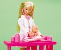 Steffi es la pediatra en la que confían los niños. Tiene todo lo necesario para cuidarles: estetoscopio, jeringa, termómetro y muchos otros utensilios. Ella se pone manos a la obra, les pesa y les hace el reconocimiento. Incluye 2 bebés. Apto para niñ@s a partir de 3 años.