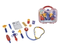 El gran maletín médico de Simba Toys. Para que los niños juegen a médicos, con todos los complementos. El maletín mide 30x28cm y tiene la parte frontal transparente para una clara visión del interior. Contiene 10 piezas con instrumentos medicos como: Termómetro, martillo, pinzas, jeringuilla, estetoscopio, otoscopio, tirita, libro de recetas, pastilleros. Instrumentos de juguete de plástico colores rojo, azul y amarillo. Para niñ@s a partir de 3 años.